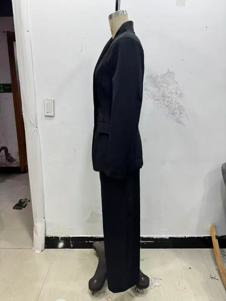Formal Women's Waist Cinching Blazer Suits Padded Shoulder Long Sleeve Jacket Baggy Pants Casual Office Streetwear Set Outfit